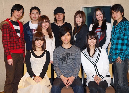 ![]() Съёмочная группа (слева направо): сидят Ай Нонака (в аниме Канадэ Такацуки), Мию Ирино (в аниме Томохару Нацумэ) и Харука Томацу (в аниме Мисао Минаками); стоят Дзюндзи Мадзима (в аниме Сю Махива), Кэндзи Такахаси (в аниме Яги), Кимико Кояма (в аниме Рэйко Саэки), Сётаро Морикубо (в аниме Рэйсиро Саэки), Эри Китамура (в аниме Рицука Курасава), Риэ Танака (в аниме Сюри Куросаки) и Хиро Симоно (в аниме Такума Хигути). ![]() |